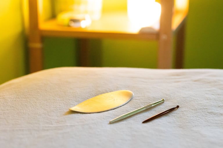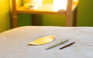 One of the tools she often uses is the teishin — a traditional Japanese acupuncture instrument designed to gently stimulate the body without piercing the skin.